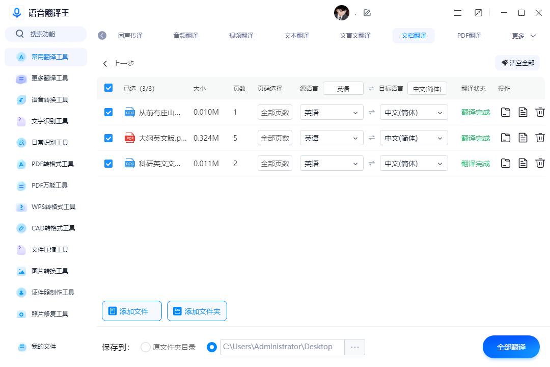 一款多功能的翻译软件,支持文档翻译、文本翻译、图片翻译等,可以多个文件批量翻译,并且翻译速度快,翻译后的Word文档质量上乘,十分好用,日常办公学习都能用得上,目前可以免费使用一次。