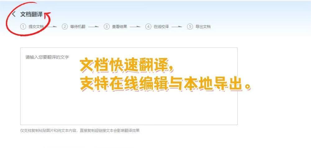 点击网站首页的【文档翻译】,然后上传需要翻译的Word文档,需要等待一会,等机器翻译成功后,就能在线编辑和导出了。