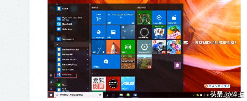 第一种方式:单击左下角的开始界面→在菜单中找到Word→单击打开。