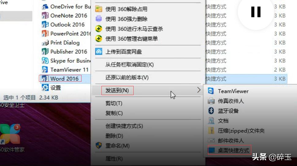 快捷方式发送到桌面