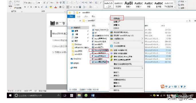 如果要同时打开多个文档的话,首先要先找到要打开的文档,然后选中文档→Ctrl+单击左键(选中需要打开的文档)→单击右键→选择打开。