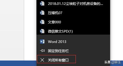 首先,在任务栏中找到Word文档→单击右键→选择甘比所有窗口;这样就直接关闭了多个文档。