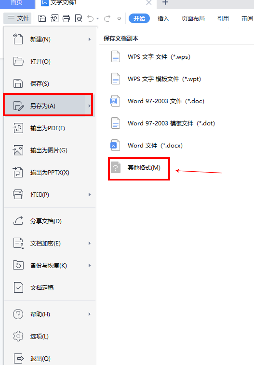 第2步:根据系统跳转页面,选择“另存为”,“其他格式”。