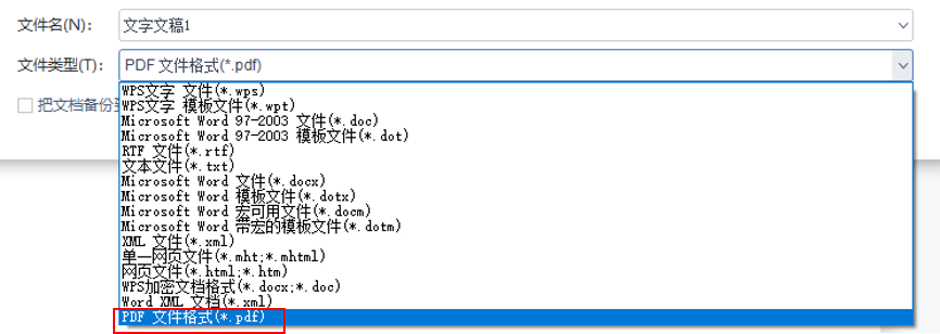 第3步:在“文件类型”中选择“PDF文件格式(*.pdf)”,然后保存。