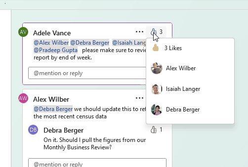 微软表示用户在 Word 上添加注释评论之后,评论右上角就会出现“Like”图标,允许用户点击表明认同这个评论。