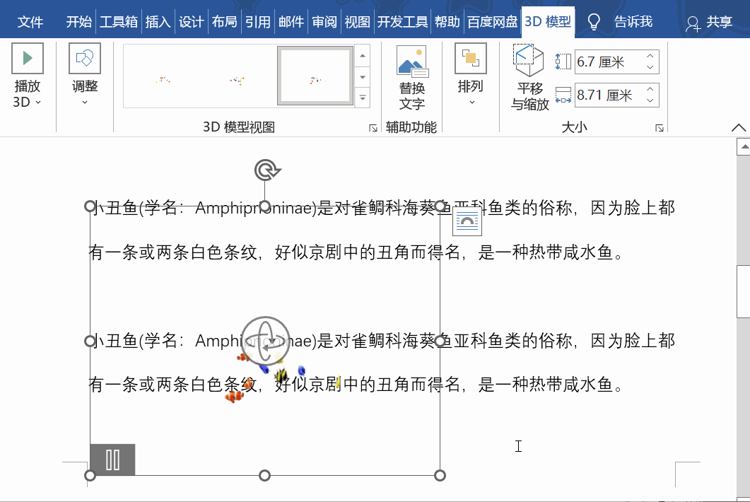 如果你在写一篇关于小丑鱼的文案,或是其他,是否想过在文案中插入一张图片来佐证呢?也许你已经插入图片了,但是你不知道吧,我们还可以让图片动起来,,更加灵活直观,那就是3D模型。