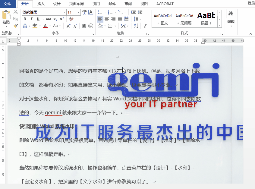 网络真的是个好东西,想要的资料基本都可以在网络上找到。但是,很多网络上下载的文档,都会有水印,而水印更是会干扰我们的预览和使用,对于这些水印,你知道该怎么去掉吗?其实Word文档不同的水印,是有不同去除放法的,今天gemini就来跟大家一 一介绍下。