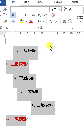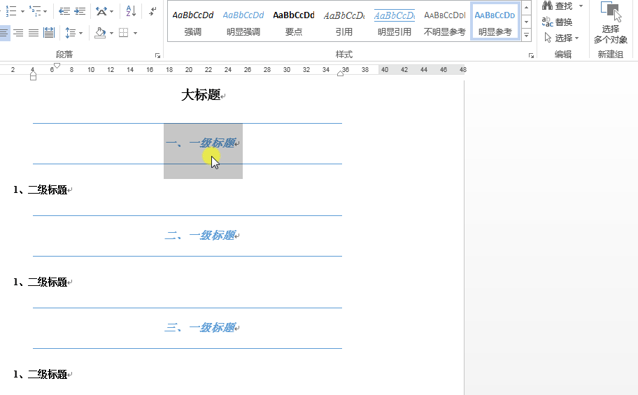 第1步,借助Ctrl键选中多个同级标题;