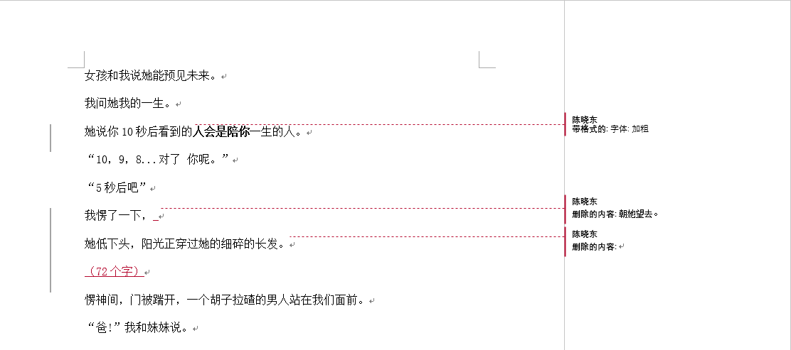 先打开 Word 的修订功能,只需一秒,Word 就会记下你的修改痕迹并显示出来。