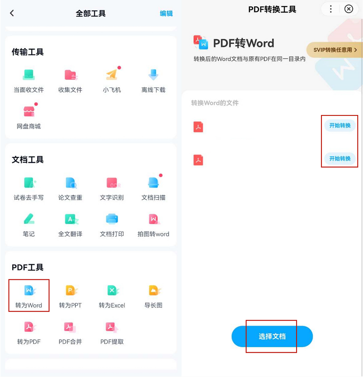 操作方法:打开百度网盘手机应用,点击“全部工具”——“PDF工具”——“转为Word”,上传要转换的PDF文件,点击“开始转换”即可。