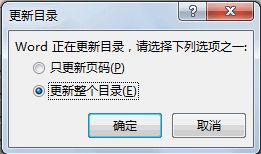 (1)如果是只增加或删除了文档的内容,没有更改标题,那么可以选择【只更新页码】的方式。