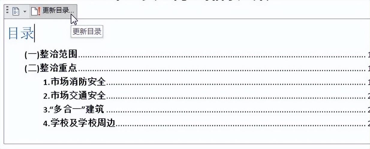 (2)如果修改了文档标题,就需要选择【更新整个目录】的方式。
