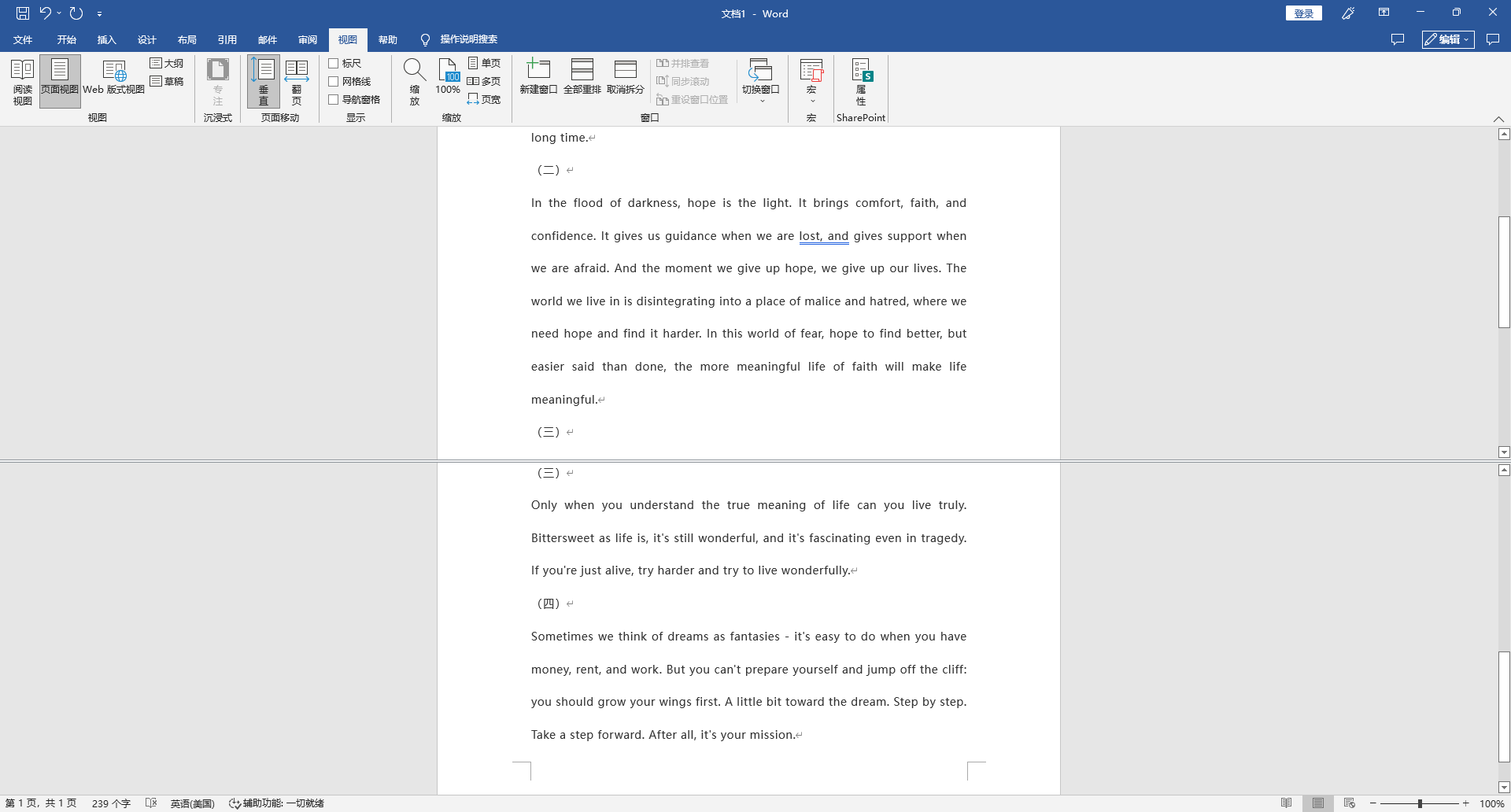 操作步骤:进入文档后,我们点击【视图】,后选择【拆分】,比起鼠标滚来滚去,省时又省力。