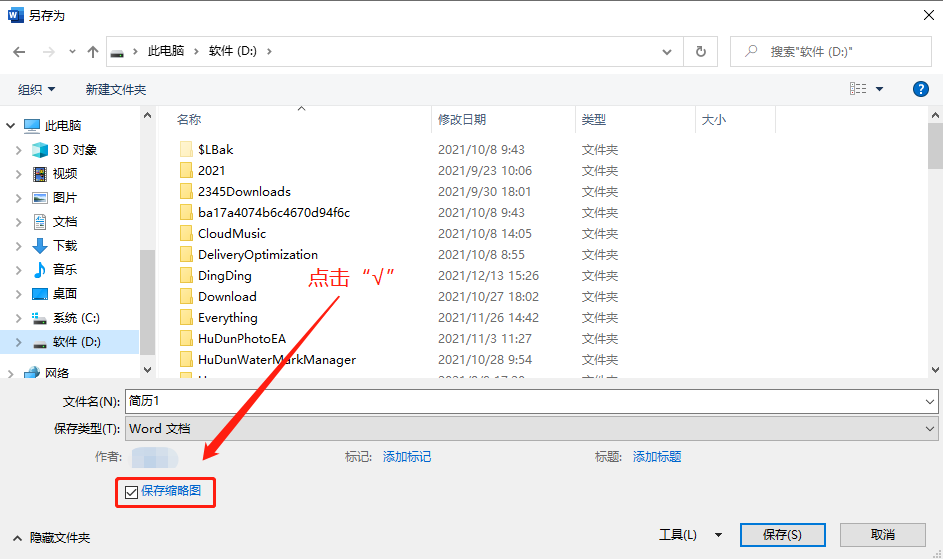 操作步骤:在保存时,勾选【保存缩略图】即可,勾选之后,等到再一次查看文档时就会以缩略图的形式展现,这样我们找文档时就可以快速地找到想要的那一份啦!