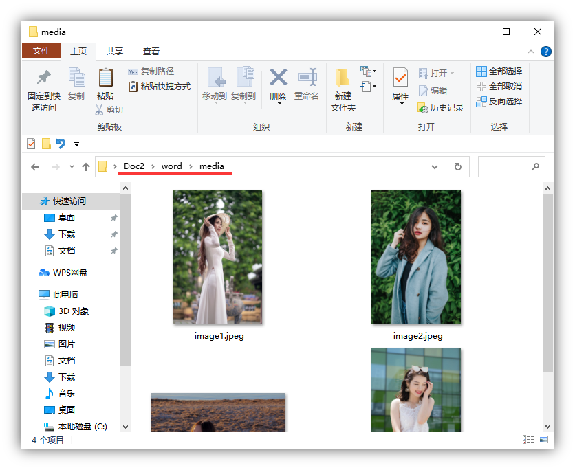如果你想将Word文档里的图片全部导出,那可以采用一键提取等方法。将文件名后缀改为【.rar】,解压这个文件夹,依次点开【word】—【media】,就可以看到Word里的所有图片里。