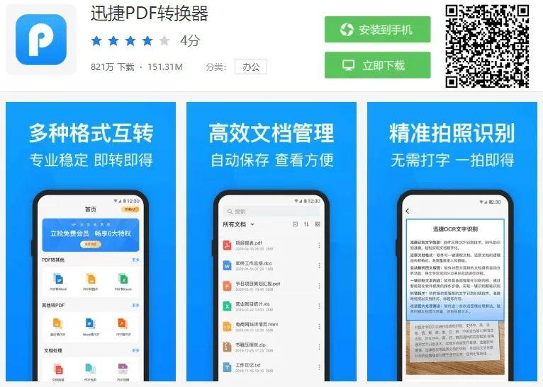 使用【迅捷PDF转换器】APP软件,支持多种格式的PDF转换,和PDF页面、PDF水印、PDF压缩、PDF加密等进行编辑修改,功能丰富、省时省力,效率高,同时保持原始文件的画质、音质无损!还有更多精彩功能,等你来体验!