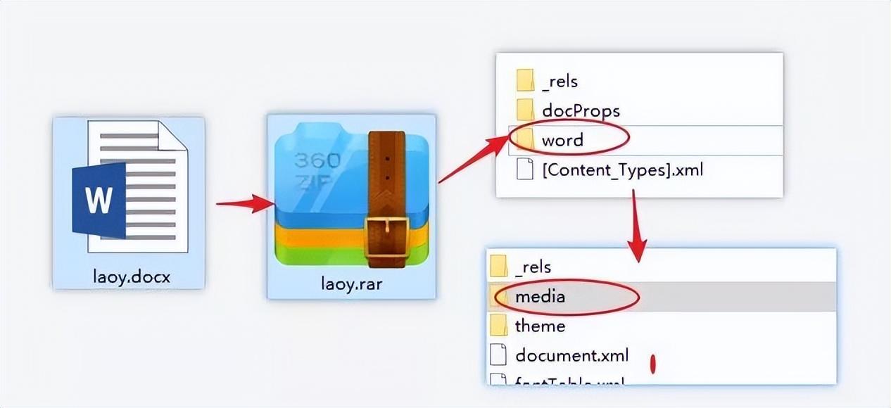 将文件名的后缀改为“rar”压缩包的格式,再解压,你就会发现图片被单独提取了出来。