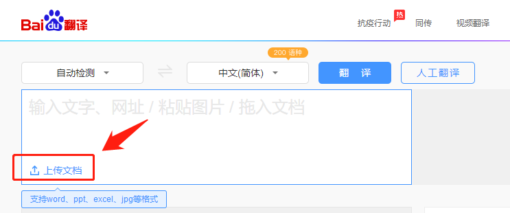 打开网站,点击【上传文档】后将需要翻译的Word文档上传到网站上,在选择好翻译语言以后点击【翻译】,网站就会帮我们完成翻译操作了。