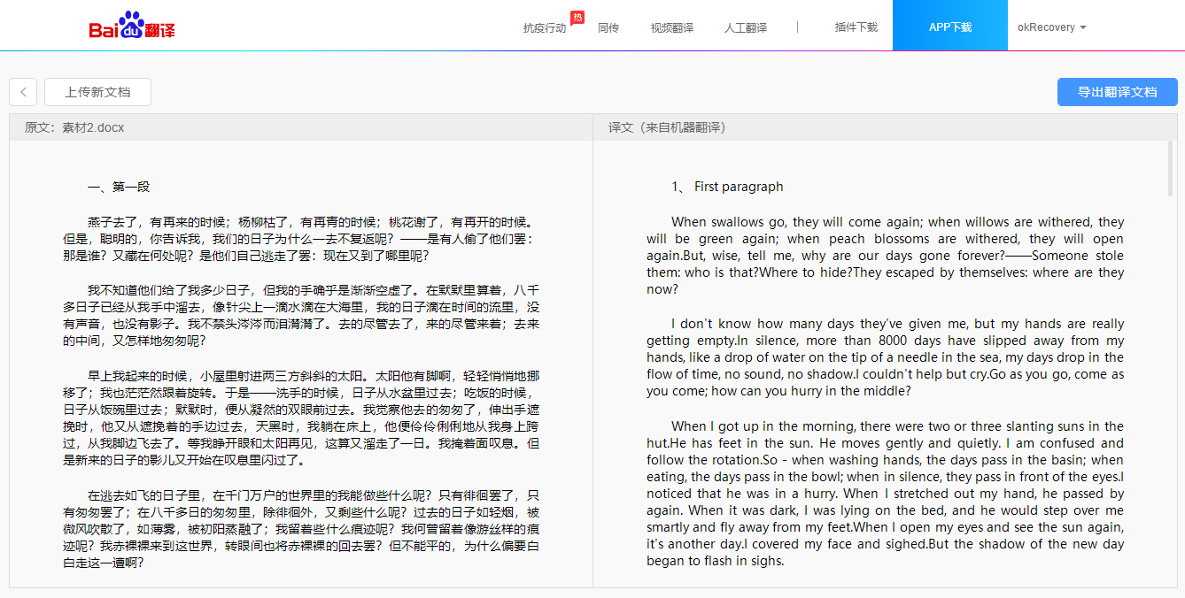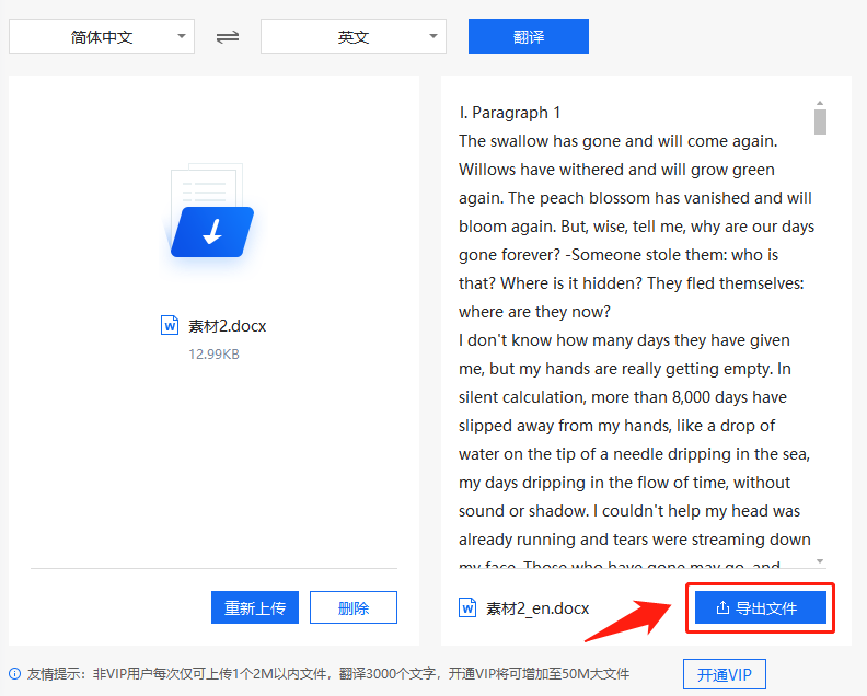 有需要的小伙伴还可以点击界面右下方的【导出文档】,将翻译的内容导出去,非常方便。