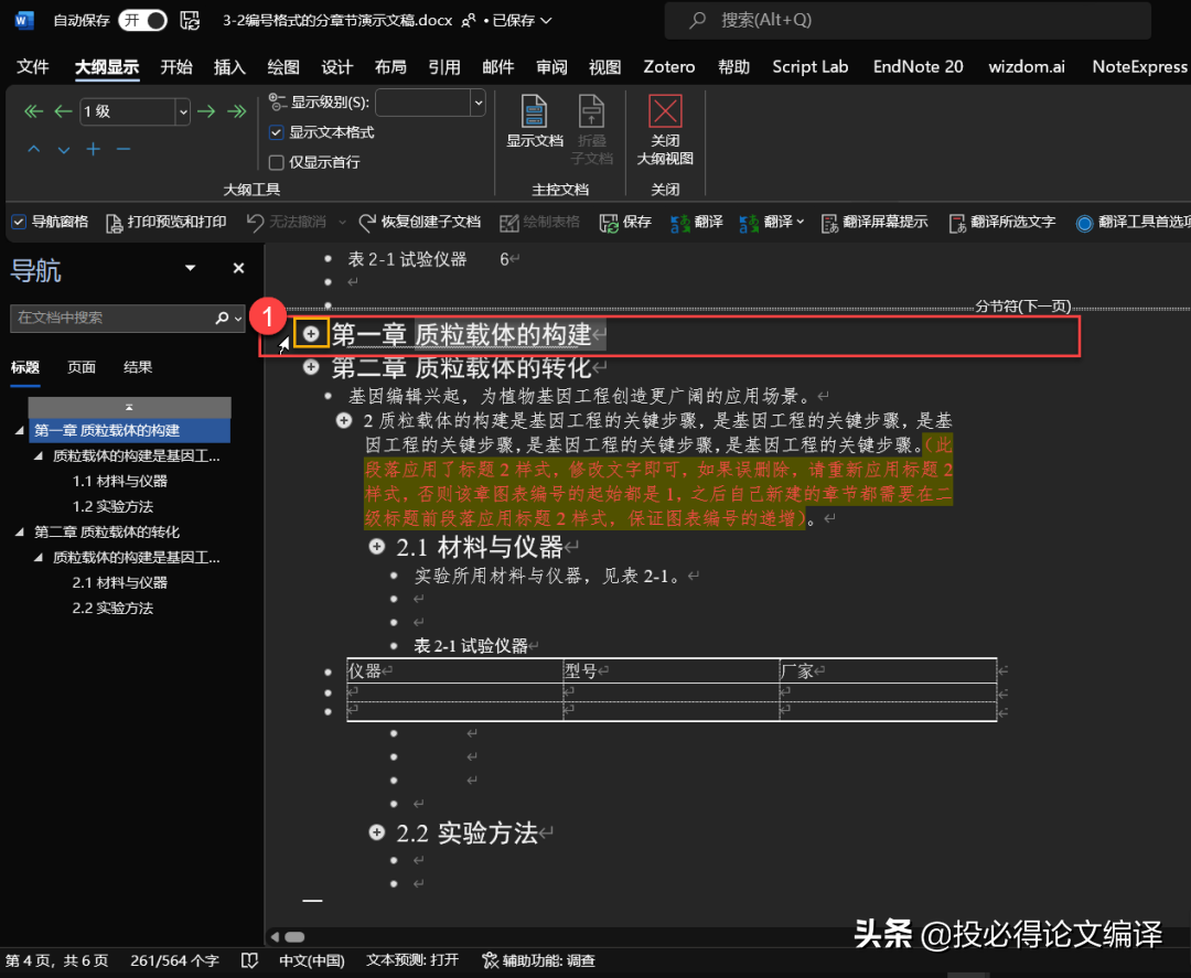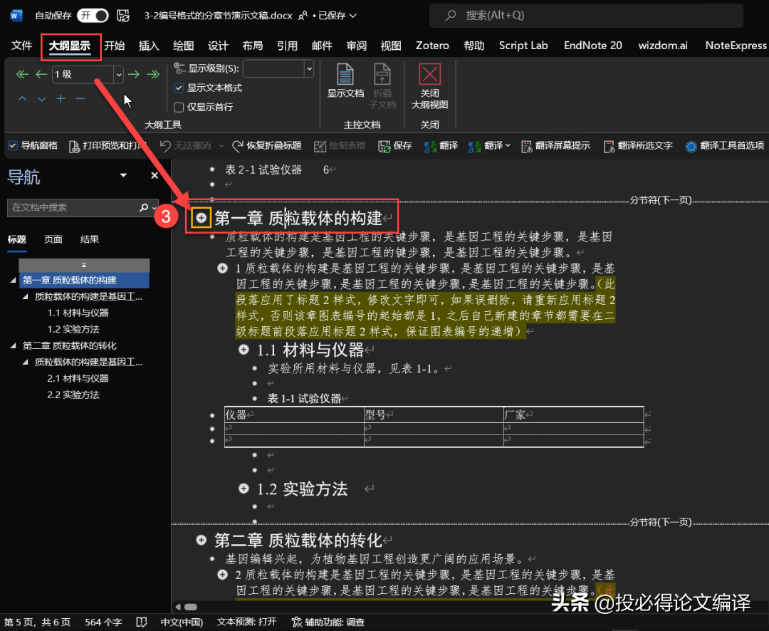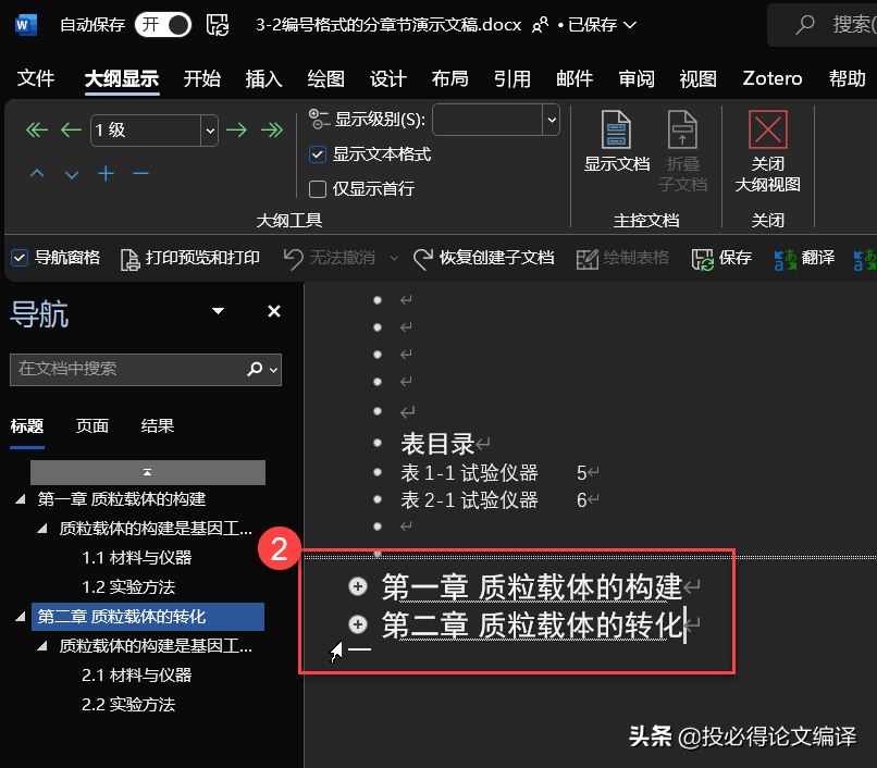 毕业论文Word必备设置4——以Word大纲视图按章节拆/合毕业论文