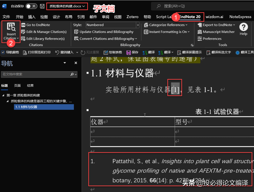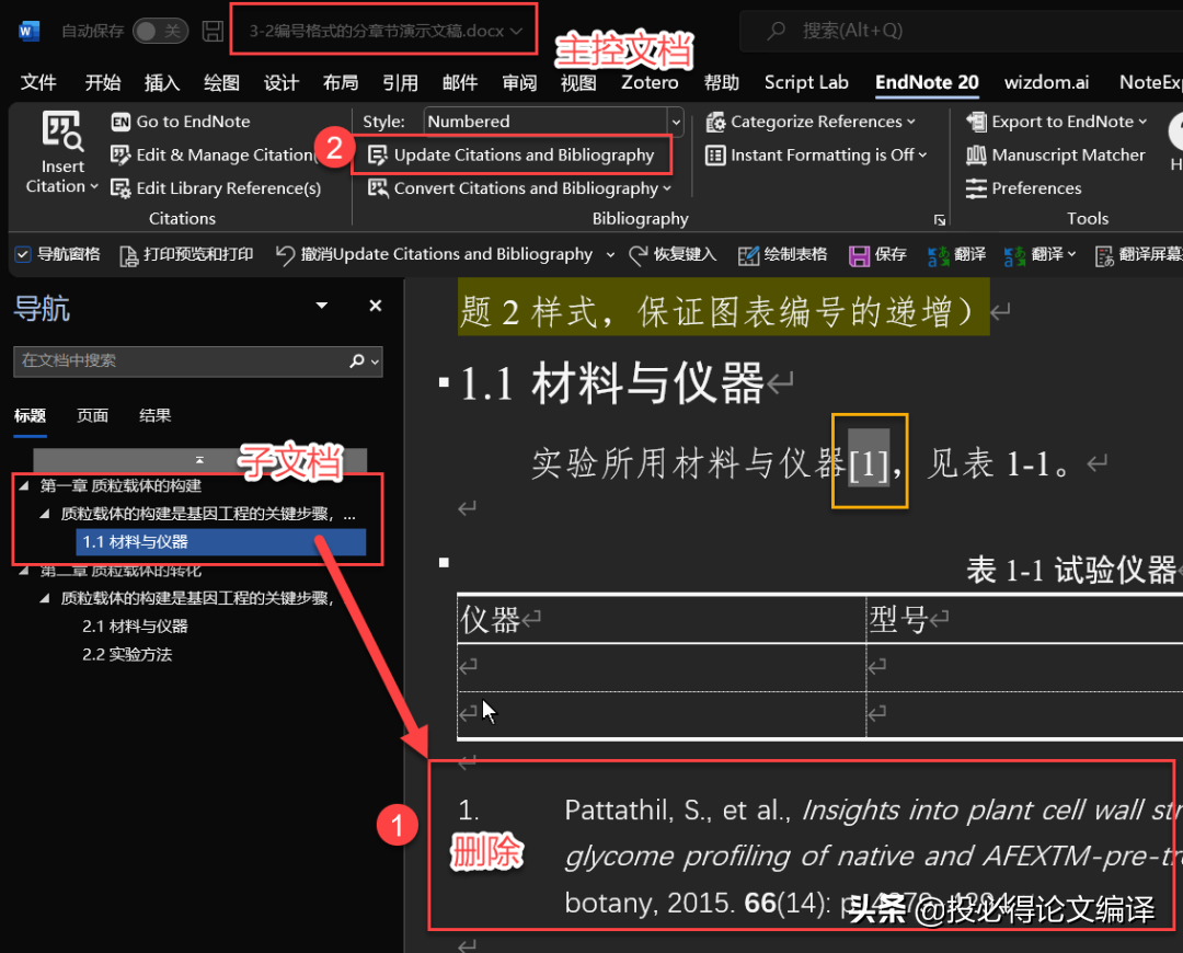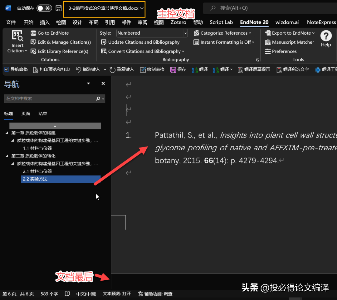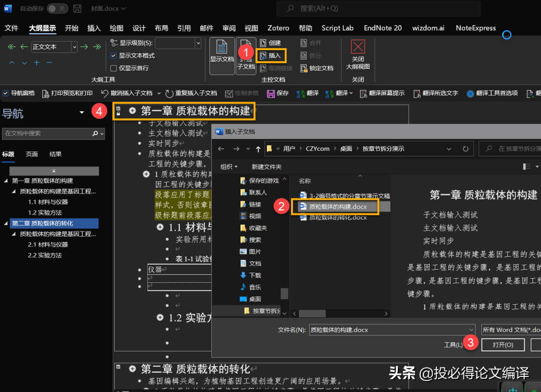 目前,已测试Endnote能完美适配Word文档的拆分与合并。
