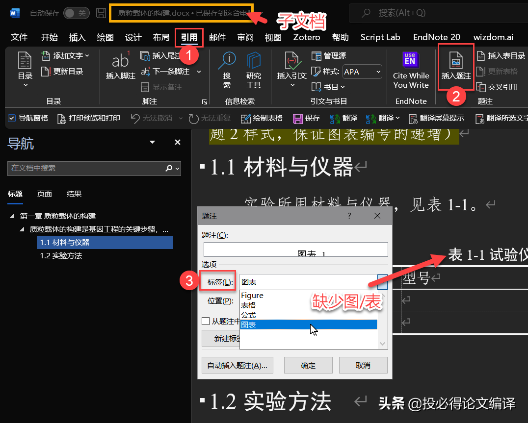 1️⃣子文档插入题注中,图表标题标签缺失的修正。