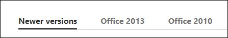 在 Office 的语言附件包页面上,选择您当前使用的 Office 版本。您将在“第 1 步:安装语言附件包”下找到三个可用选项卡。