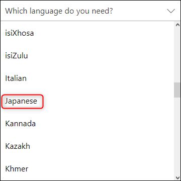 从下拉列表中,选择所需的语言。在这个例子中,我们将使用日语。