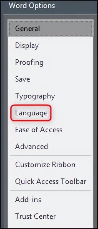 将出现“单词选项”窗口。在左侧的选项窗格中,选择“语言”。