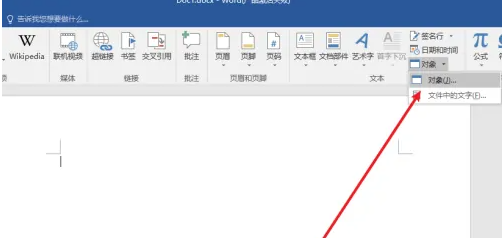1、我们可以使用设备自带的word文档编辑模式,大家可以直接打开需要插入内容的文档,然后在顶部点击【插入】这个设置,然后在插入条目下找到点击【对象】这一栏目。