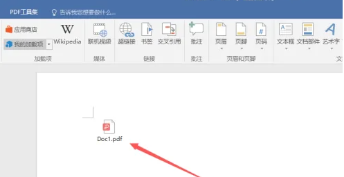3、然后大家就可以在word文档界面中看到被插入的pdf文件,这个时候就是显示操作插入文件成功了。