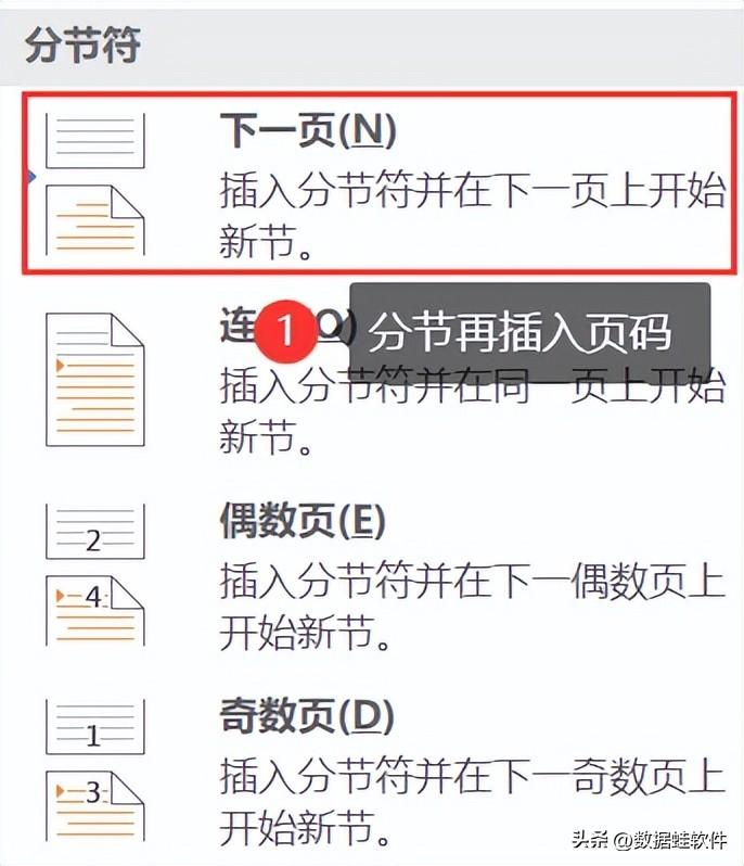 - 定位到新的分节,按照方法一的步骤设置页码,开始编号。