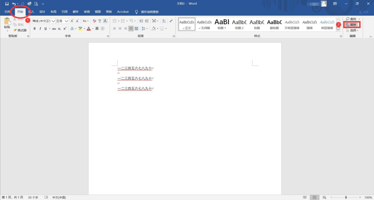 步骤一:点击【开始】后,选择【替换】选项;