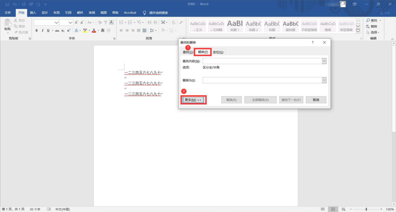 步骤二:选择【替换】后,点击【更多】展开里面的选项;