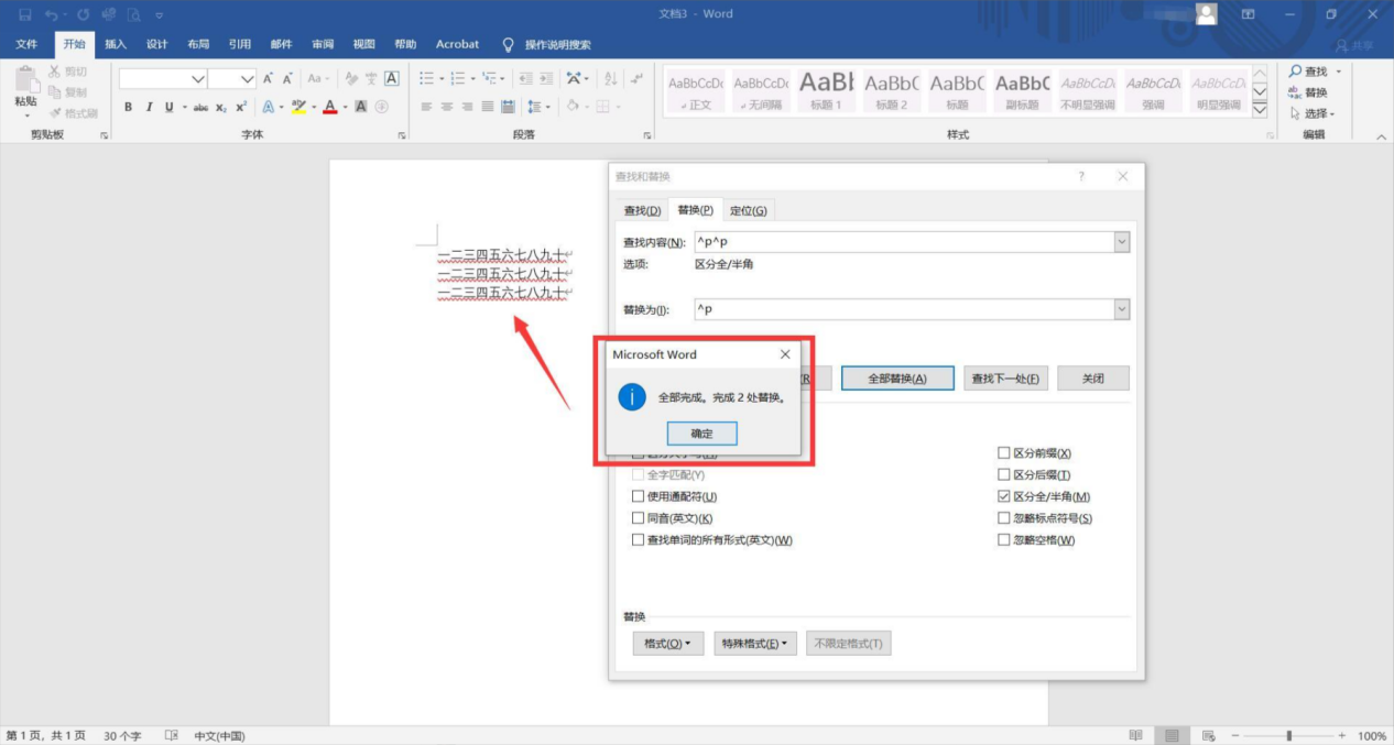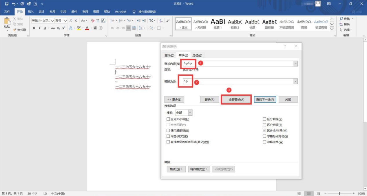步骤四:点击【全部替换】即可;
