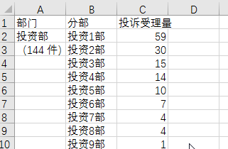 ❷ 删除不需要的行,即「分部」和「投诉受理量」列。