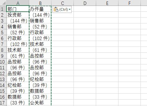 因为在后续操作中,我们会把部门列中所有数字全部删除。