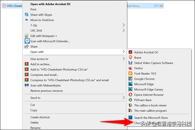 右键单击您的 PDF,然后从打开的菜单中选择打开方式 > 选择另一个应用程序。