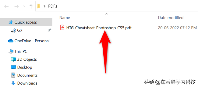 要在 Windows 上执行此操作,首先,启动文件资源管理器窗口并找到您的 PDF。