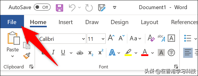 为此,请在 Word 的左上角单击“文件”。