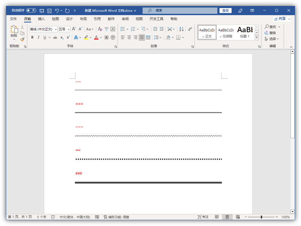 平常需要添加分隔线,你是不是还在插入线条,拖动鼠标划线?这样很容易画歪的。在Word空白处输入三个符号,然后按下回车键,就会变成分隔线,例如: