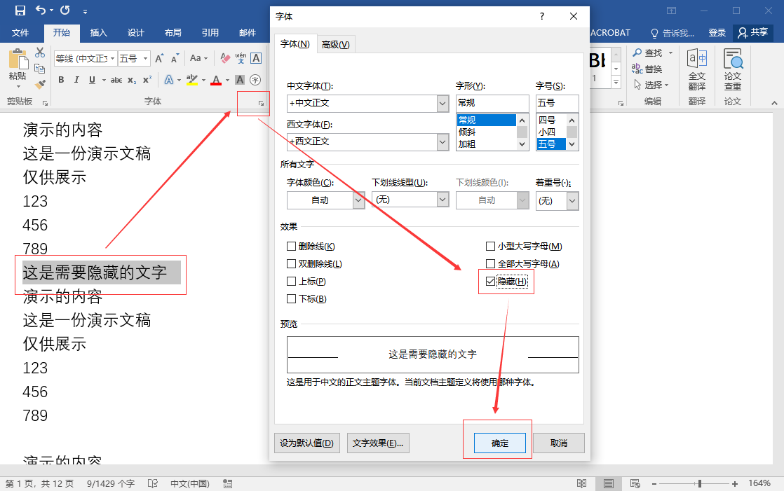 我们的文档需要展示,但是里面一部分内容是需要保密的,不想直接删除,可以选择将文字内容隐藏。