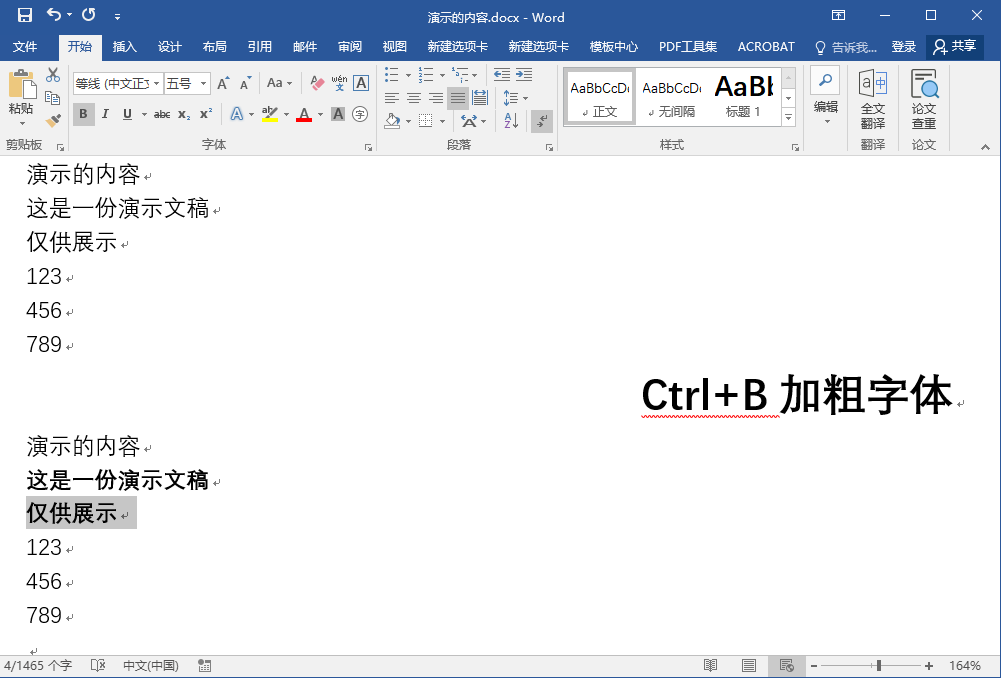 想对标题做出区分,可以通过加粗字体的方式,按下【Ctrl+B】就可以快速地加粗字体。
