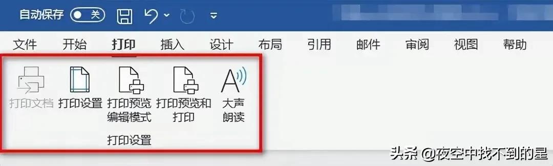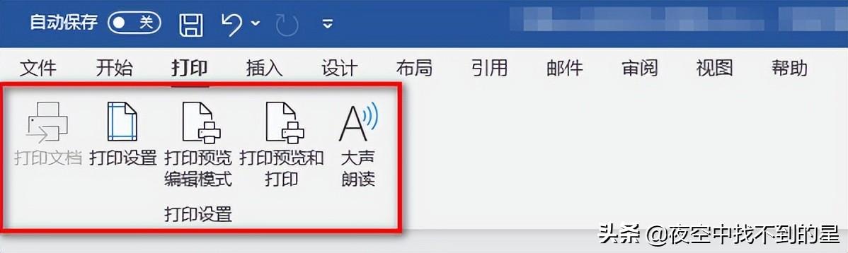 请看我通过“自定义功能区”的操作 添加的“打印”功能区,这可以让我更加方便地进行文档“打印”的设置和操作。