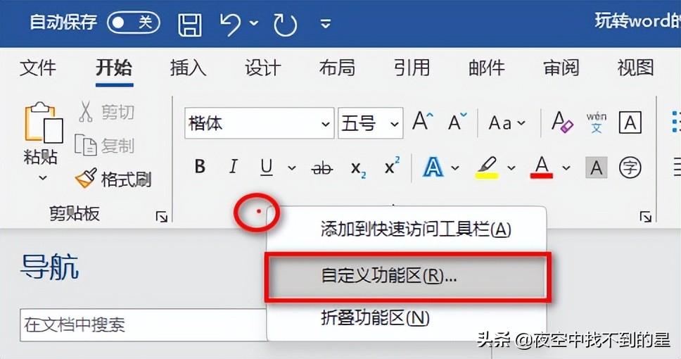 B,快捷方式,还有一个最快的,就是在功能区中任何地方点击鼠标右键,弹出快捷工具栏,点击“自定义功能区”选项,也能弹出“Word选项”窗口。
