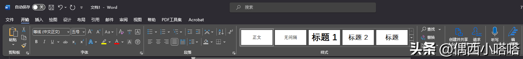 新版本的微软word企业版或或365家庭版,都已经改成功能区选项卡的菜单方式,如下图所示: