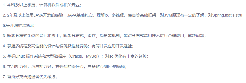 可以到招聘网站上看看应聘岗位的岗位要求,下面是阿里巴巴国际事业部Java开发岗位的要求: