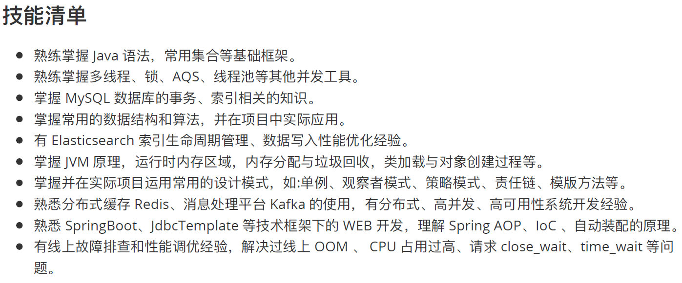 - 不要写一些跟技术无关的东西,比如"PS/PR"、"驾照"、"会用OFFICE"、""会重装系统"等等...