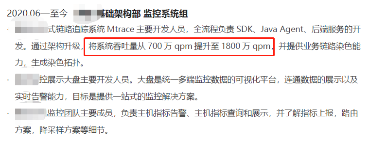 5、避免流水账式的介绍,有部分同学会把项目经历写成日记一样,比如"从 xx 年开始做,先经历了 xx,然后发生了 xx"等等,洋洋洒洒几百字,非常不建议这么写。