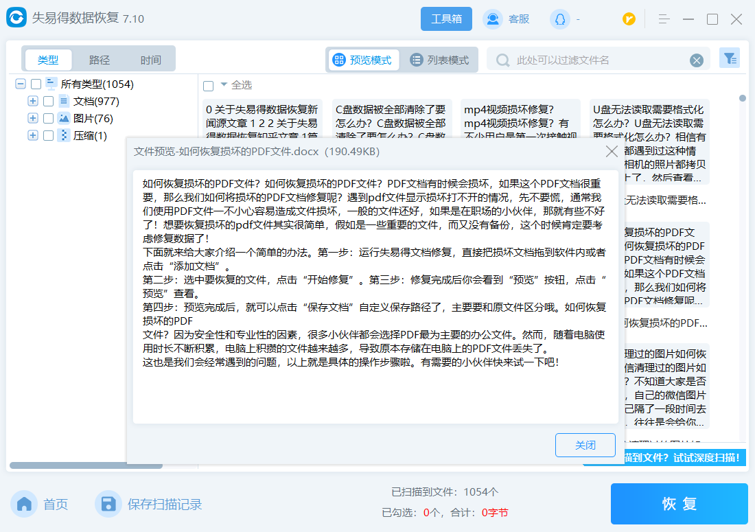 如果上述方法无法恢复你的Word文档,则可以尝试使用第三方恢复软件。这里我们就以失易得数据恢复这款软件为例,给大家演示一下具体的操作方式: